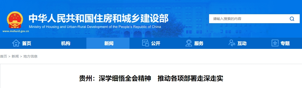 据贵州省住房城乡建设厅消息,全省住房城乡建设系统把学习领会、贯彻落实全会精神作为重大政治任务,在思想上、行动上、成效上让全