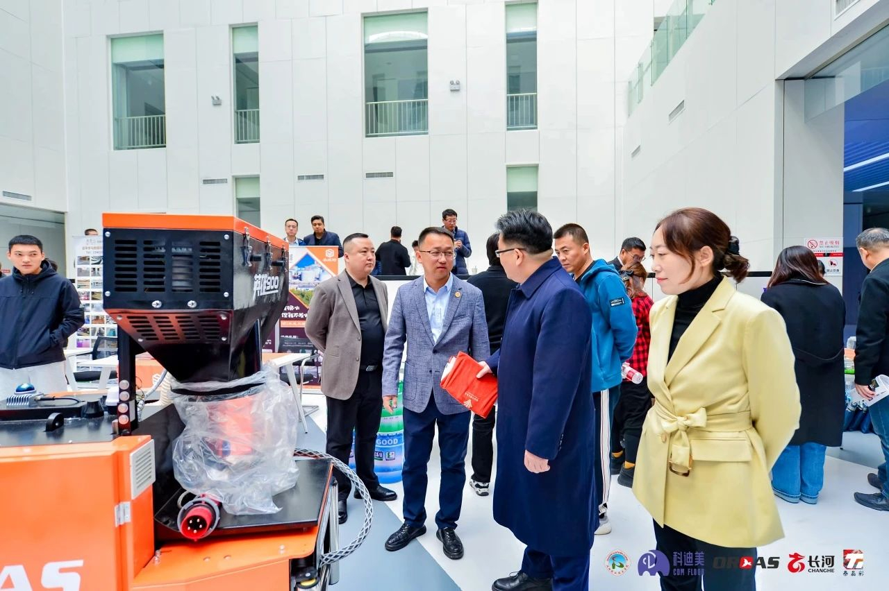 实操讲解过程中,现场观众都展现出极大的兴趣,机器人凭借其先进的自动化技术及多样化的功能,赢得了校领导及地坪产业院长的称赞与认可,他们深刻地感受到了新兴技术为地坪带来的智能与高效。