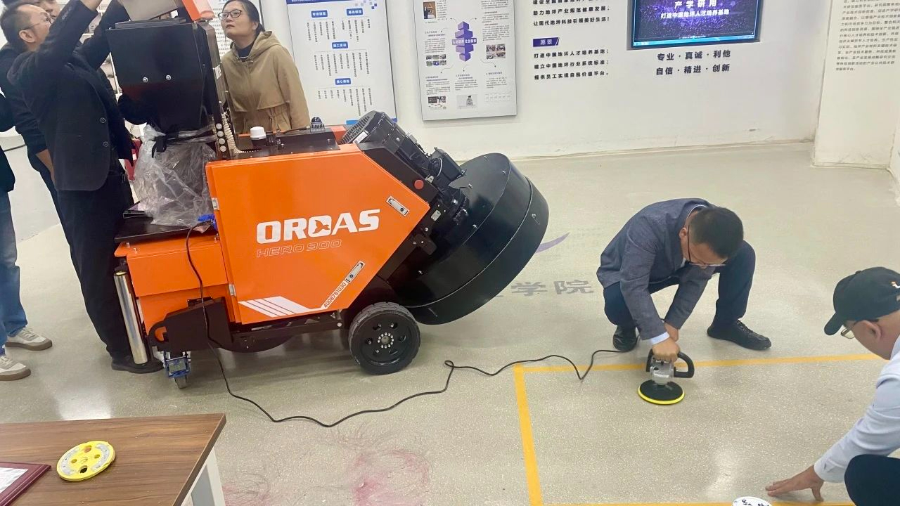 为了让师生们更好地掌握地坪研磨技术,奥卡提供了专业课程实践教学指导。我们详细介绍了英雄900的功能与操作方法,并进行了现场实操指导。