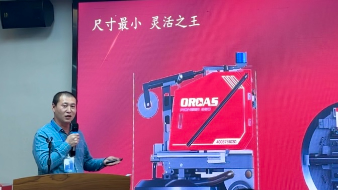 随后,奥卡机器人的技术专家为来宾带来了详细的产品介绍。他们从配置、自动化操控、智能磨盘保护等方面展示了奥卡机器人的英雄900和先锋860两款地坪研磨机器人。此外,奥卡还提供了实操理论讲解,全方位地展示了APP操控的简易便捷。