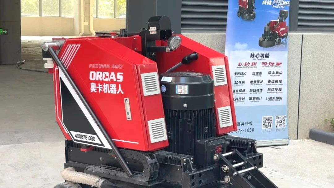 奥卡公司首先向考察团详细展示了“先锋860”地坪研磨机器人的首创的无级磨压功能。通过精密的无级磨压调节系统,“先锋860”能在262公斤至428公斤的范围内任意调整研磨压力。值得一提的是,当磨压调至最小值时,机器人能够轻松实现单手撬动,极大地方便了磨片的更换操作,展现了其在提升施工效率与灵活性方面的显著优势。
