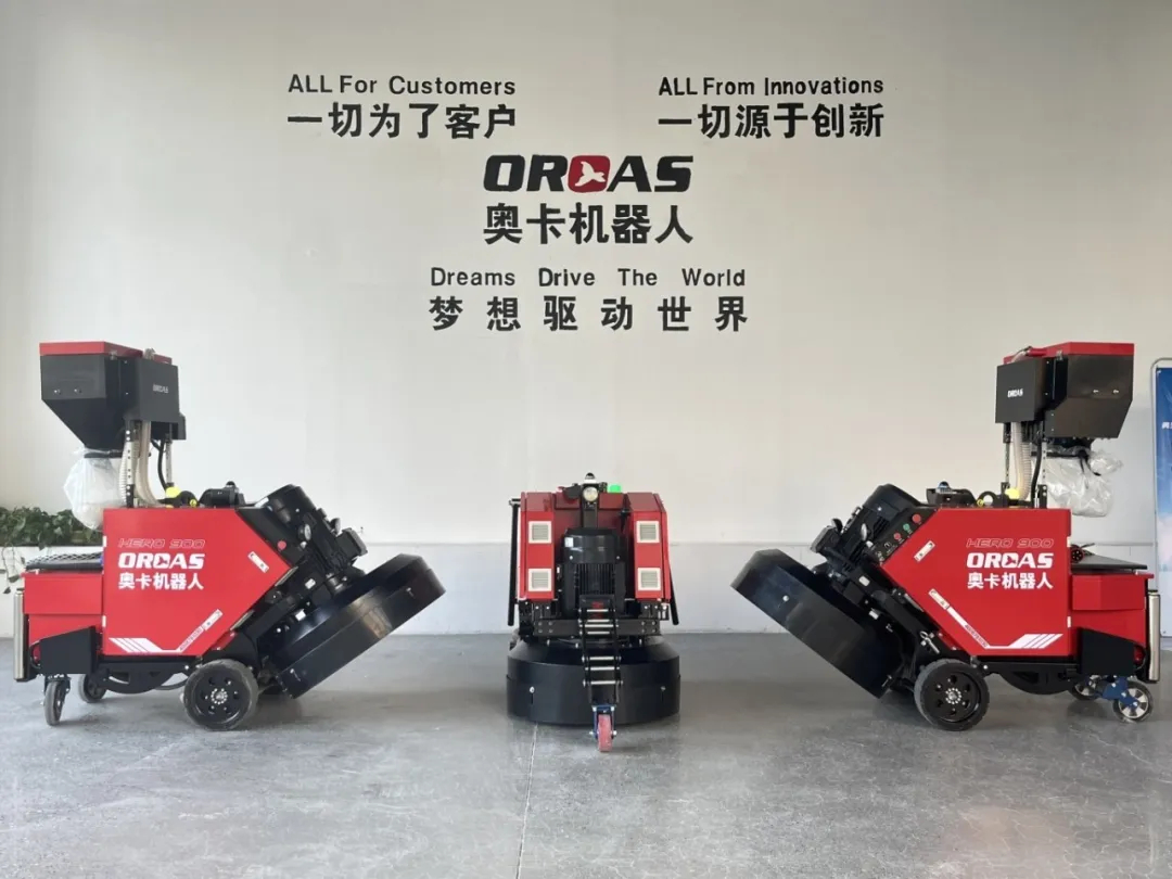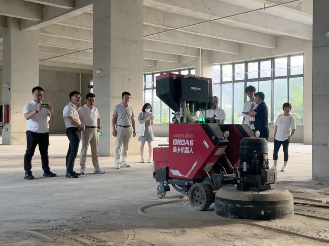 参观环节,奥卡机器人自主研发的先锋860和英雄900地坪研磨机器人成为全场焦点。