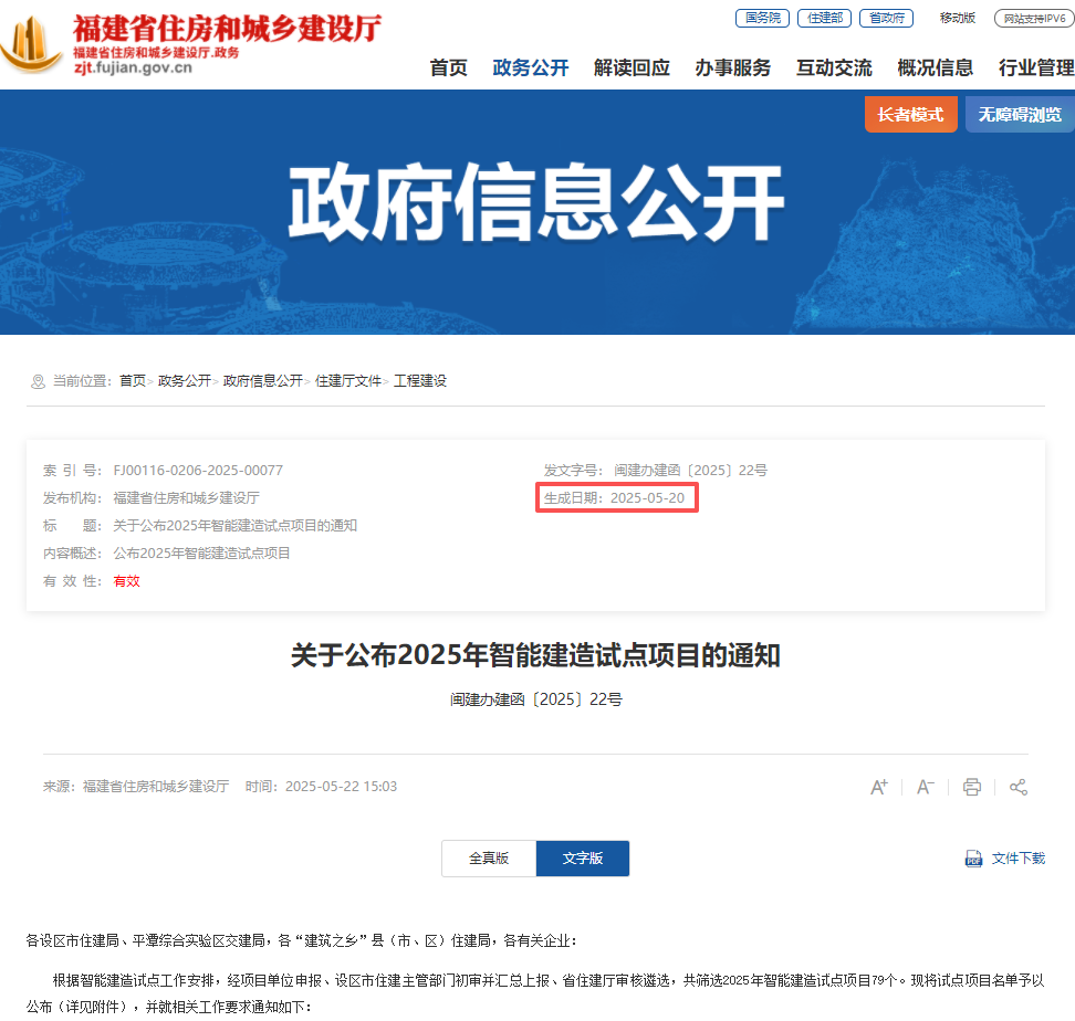 2025年5月20日,福建省住房和城乡建设厅《关于公布2025年智能建造试点项目的通知》,鼓励企业重点推广BIM“一模到底”应用,外墙喷涂机器人、钢筋绑扎机等技术,代替“危、繁、脏、重”工作,提高效率,保障安全。