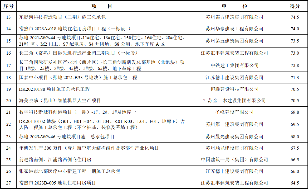 为深化智能建造技术应用,进一步提升试点项目建设成效和实施效益,根据《关于进一步完善苏州市智能建造试点项目季度考核工作的通知》(苏建函建〔2024〕276号,以下简称《考核通知》)要求,市推进智能建造试点城市工作专班办公室于2024年12月4日~6日组织开展了2024年四季度智能建造试点项目考核。